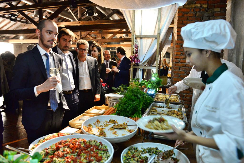 Presso la prestigiosa location Officine del Volo sono stati organizzati welcome drink e cena a tema “Benessere, Jazz e Bollicine”. Gli ospiti infatti hanno potuto apprezzare e gustare le ricette ideate dallo Chef scienziato Marco Bianchi, tutte a base di prodotti Orogel e preparate dal raffinato catering: Caffe scala Banqueting. Tra gli sponsor anche Mionetto, Bollicine Italiane. Il tutto con un sottofondo musicale Jazz a cura della band Bocconi Jazz Business Unit.